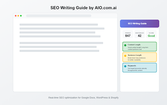 SEO 写作指南是一个免费的 Chrome 插件,旨在增强 Google Docs、WordPress 和 Shopify 等平台的内容创作。该工具为用户提供实时内容分析,提供有关字数、句子结构和可读性分数的见解。其主要重点是帮助作家生成 SEO 友好的内容,通过在他们撰写时提供量身定制的建议,确保他们的写作符合优化标准。